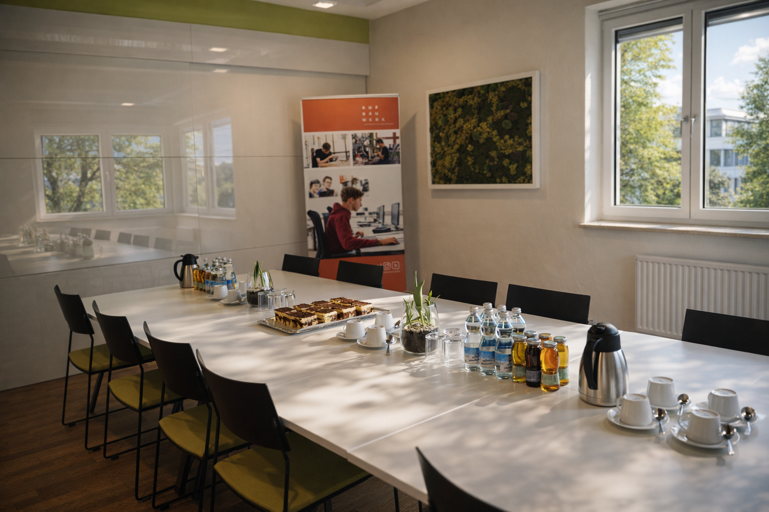 Die zwei modernen Seminarräume im AufBauWerk Innsbruck bieten den idealen Rahmen für Besprechungen, Meetings, Workshops und Seminare. Unsere Räume lassen sich flexibel an Ihre Bedürfnisse anpassen und sind mit modernster Ausstattung für einen reibungslosen Ablauf ausgestattet.